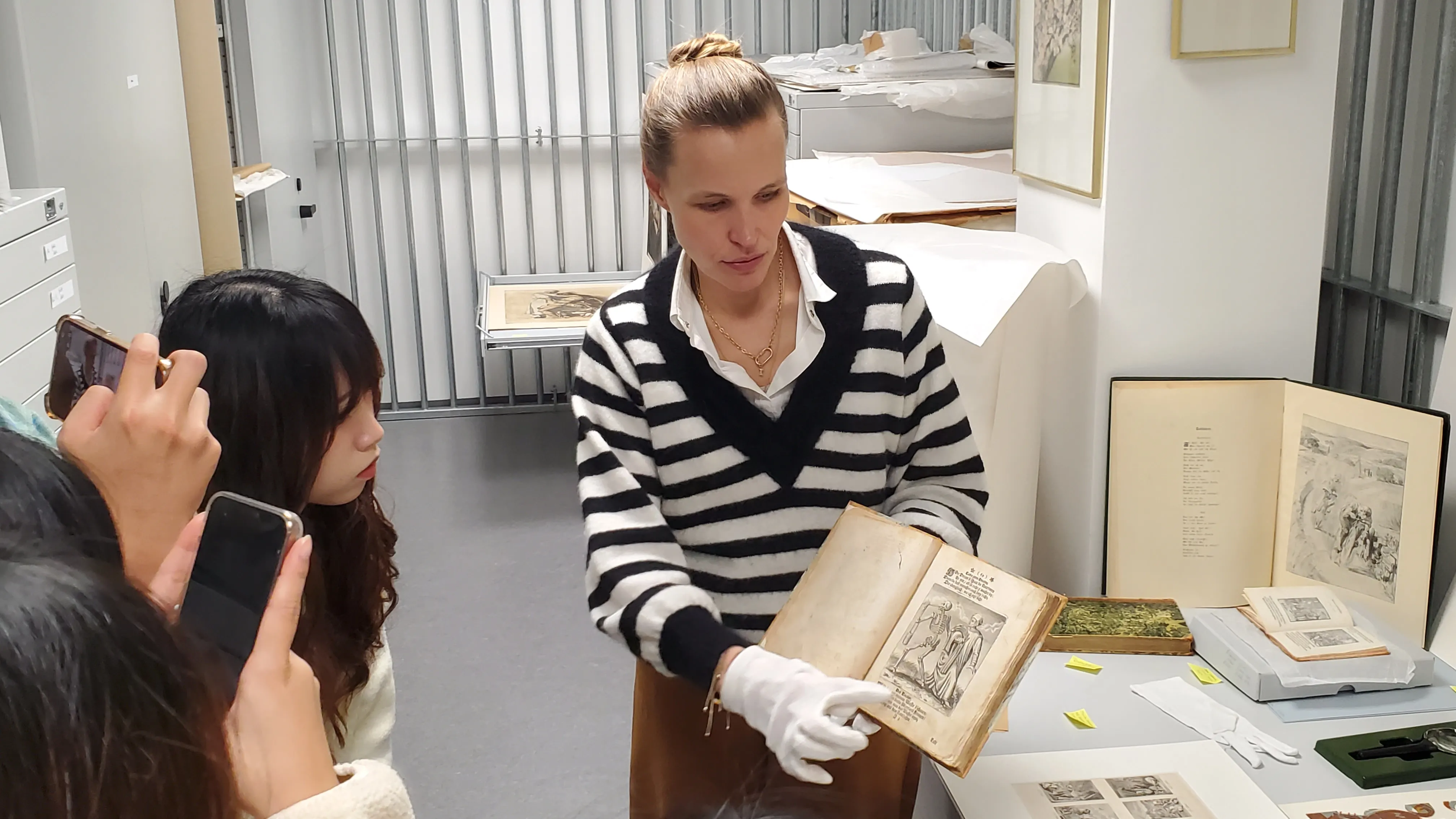 照片二、親手觸碰十六世紀以來珍貴的醫學手稿與畫作,學習醫學史料保存與維護實作,重新省思疾病、死亡與醫學,讓同學意識到醫療不只是冰冷的技術,更是人類文明對抗苦難的縮影。